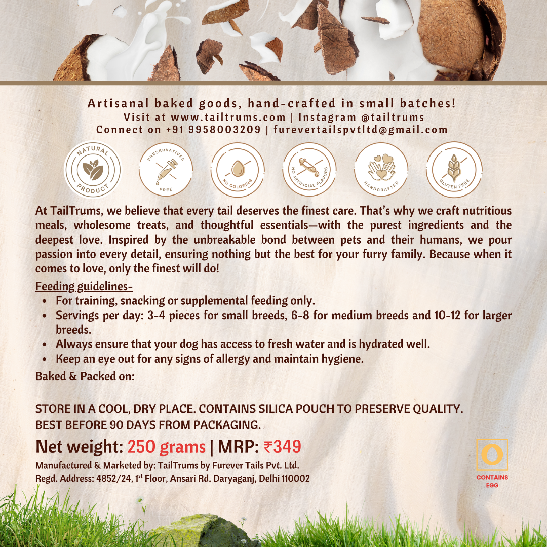 Tailtrums Milk Coconut Cookies 🥥🥛 – Nutritious Dog Treats
